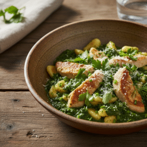 Grüne Göttin-Hähnchen-Spätzle mit Spinat und Kräutern – Herzhaft & Frisch